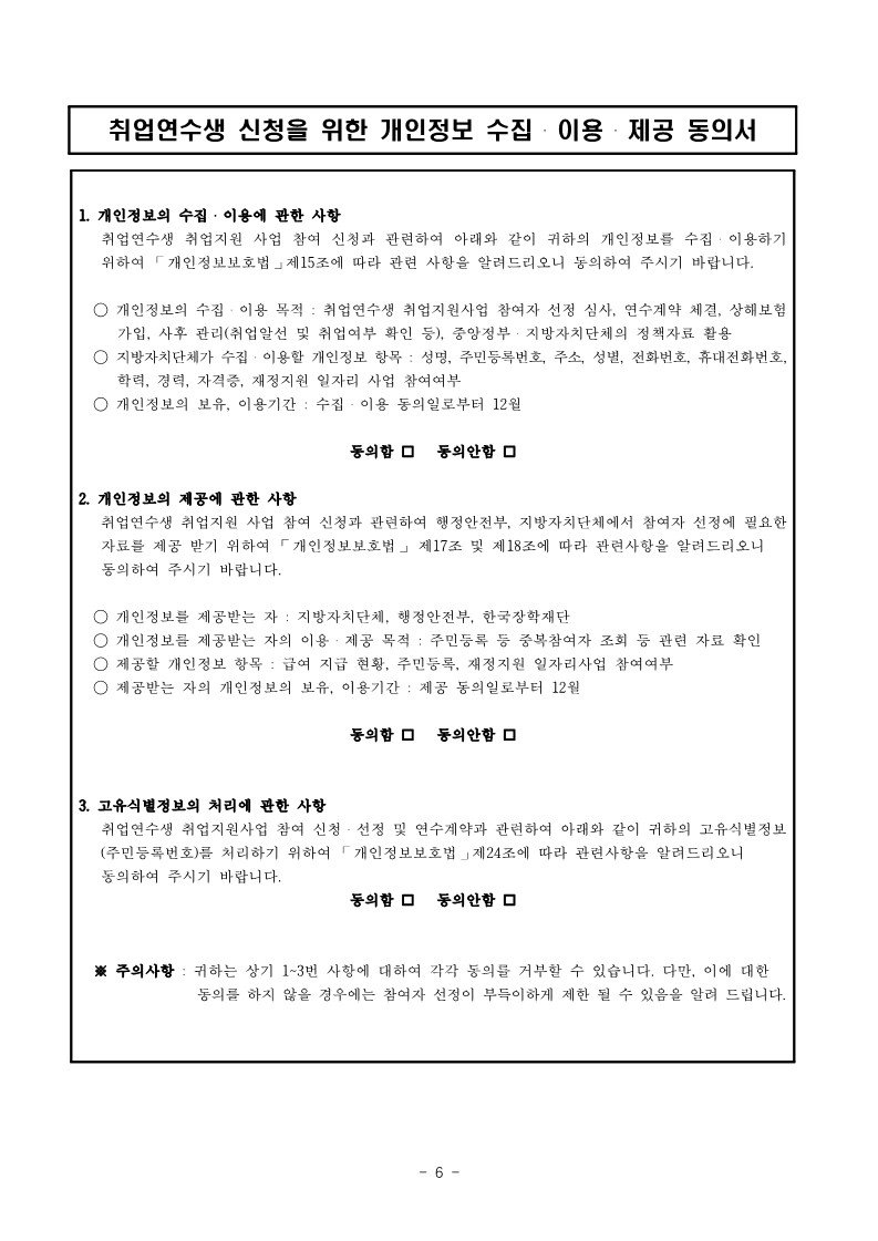 5. 연수내용 : 행정업무지원(정책홍보 등), 직장체험, 기업탐방, 직무능력배양 등